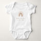 Este body de bebê para anúncio de gravidez arco-íris boho da Coleção Rowan é perfeito para um simples chá de bebê e para fotos de anúncio de bebê. Este design minimalista fofo apresenta um arco-íris único neutro em rosa bege claro e dourado e é perfeito para a primavera ou verão.