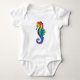 Articulação artificial, brilhante, arco-íris, cavalo de mar poligonal sobre fundo branco. Tatuagem brilhante.