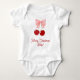 Adote o estilo coquete da moda com este design fofo com um arco rosa e um gráfico de cereja vermelha. Mantenha as palavras "Feliz Natal, Bebê!" ou personalize facilmente com as palavras que você quiser.