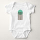 Este macacão-bebê tem uma design moderna do século médio com um círculo verde-marinho com correntes de diamante marrom.
