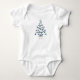 Uma ilustração de uma elegante árvore de Natal branca e chique com muitas bolas azuis penduradas em fundo rosa. Esta design é para pessoas que amam o Natal, dando presentes e presentes.