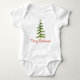Linda árvore de natal de aquarela com um casaco de bebê de estrela dourada.