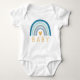 Celebre o seu bebê arco-íris com este lindo traje arco-íris. Este design apresenta sombras que complementam o azul e o ouro. Você pode personalizar este design com seu próprio texto ou nome.