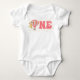Este jumper de uma peça para bebê apresenta um balão de ar quente floral rosa e dourado com pontos divertidos e bandeiras em conjunto com uma simples fonte retrô e soletrando a palavra 'um'. Esta roupa de bebê é a roupa perfeita para a sua festa de aniversário retrorada.