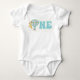 Este saltador de uma peça de bebê apresenta um balão azul e dourado de ar quente floral com pontos divertidos e bandeiras emparelhadas com uma simples fonte retrô e soletrando a palavra 'um'. Esta roupa de bebê é a roupa perfeita para a sua festa de aniversário retrorada.