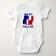 Esta é a entrada francesa na série de bolas de futebol e bandeiras. Este tem o tricolor francês voando nas costas com a bola de futebol na frente. A bola também usa o tricolor para se decorar. Sob ele, toda a palavra FRANÇA nas cores da bandeira. Mostra em ambos os lados desta roupa de bebê. Apoie a EQUIPE FRANÇA em encontros internacionais de futebol.