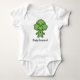Roupa adorável para o seu bebê. Um brócolis verde e bonito, com um sorriso no rosto. Abaixo estão as palavras Baby Broccoli em texto preto. Este é um modelo que pode ser usado para alterar o tamanho, cor ou estilo da fonte, alterar o texto ou excluí-lo completamente.