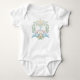 Este body de bebê doce é uma maneira perfeita de comemorar a chegada do seu novo bebê. O design apresenta uma crista de monograma com uma fita azul e um cachorrinho fofo. Você pode personalizar com uma inicial e um nome.