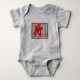 Body Triciclo Bebê projetado com uma silhueta de cor vermelha de um menino rebocando uma menina na parte de trás de um triciclo, e os textos ...trabalho em equipe faz o sonho funcionar.