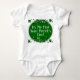 Divertimento e t-shirt bonito do dia do primeiro St Patrick do bebê ou de uma peça só para o bebê, criança. Forma oval das características com fundo de Kelly e lotes verdes de quatro trevos afortunados do trevo da folha. Excelente para um bebé ou uma menina pequena no dia dos patricks do santo ou no chá de fraldas. É excelente que veste o verde no dia de St Patrick. Todo o © de Copyright do design www.CuteComfy.com 2013