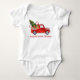 A Camisa De Bebê De Primeiro Natal inclui Watercolor Vintage Red Truck com Árvore de Natal, Neve, Presentes de Natal e Canes Doces.