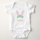 Os orelhas rosquinhas adoráveis, enquadrados com uma bonito tiara floral, fazem um belo casaco de bebê Páscoa. Personalize em um escrevendo rosa fofo.