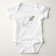 Um body infantil de bebê doce e divertido com um foguete pastel fofo voando por um rastro de estrelas. Cores suaves e um design minimalista limpo tornam-no perfeito para uso diário, presentes de chá de bebê, roupas de recém-nascido ou estilo de berçário temático espacial.