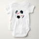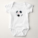 Cada lado desse traje de uma peça de um bebê esportivo apresenta uma bola de futebol preto e branco. É certo marcar quando personalizado com o nome do bebê. Seja Futebol ou Futebol, este design desportivo também está disponível em camisetas para crianças, crianças, crianças e adultos.