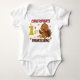 Celebre seu primeiro dia de Ação de Graças em estilo com este adorável e personalizado traje de bebê que apresenta um belo peru animado cercado por folhas festivas de outono e texto ousado.