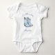 Este body de bebê fofo apresenta uma ilustração em aquarela de um par de botas de caubói azuis. Acima, a frase "Nosso pequeno caubói" ou outro texto de sua escolha aparece em escrita à mão azul. Personalize com o nome do bebê abaixo. Um design ideal para um chá de bebê de menino.