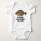 Um presente bonito para o Pai-a-ser que ama pescar. Esta camisa de bebê de pesca apresenta uma solha gigante e o texto "Futuro Solha-Solha"