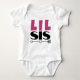 Celebre a alegria da irmandade com nosso adorável bodysuit de bebê com a encantadora frase "Lit sis" acompanhada por uma seta apontando de forma divertida. Este design delicioso faz parte da nossa coleção de irmãos combinando, perfeito para mostrar o vínculo especial entre o irmão mais velho e a irmã mais nova. Feito para conforto e estilo, este bodysuit não é apenas fofo, mas também uma adição emocionante ao guarda-roupa do seu pequeno. Deixe seu pequeno irmão mais velho brilhar neste charmoso traje, tornando cada momento uma celebração de amor e união. Abrace a doçura das conexões entre irmãos com este bodysuit de bebê encantador e moderno.