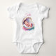Body de bebê personalizado para chá de bebê de menina, compre um para todos na família para fazê-los se sentir especiais. Doce e macio tema de chá de bebê costeiro à beira-mar em tons pastel rosa, coral, azul e dourado. Uma pequena menina dormindo dentro de uma concha e conchas douradas. Lindas flores tropicais em aquarela caprichosas. Cavalo-marinho em aquarela, dólar de areia, flores tropicais e estrela-do-mar.