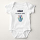 Bebê de roupa de bebê, ideal para chás de fraldas, exibindo orgulho e alegria para o novo filho.
