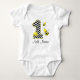 Camisa de primeiro aniversario de abelhão. Celebre o primeiro aniversário da sua menina com esta design de abelha negra e amarela divertida. Personalize facilmente com o nome do seu filho.