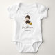 Celebrate your little wizard on the way with this enchanting Harry Potter baby shower bodysuit featuring Harry himself. This charming design includes an adorable illustration of Harry Potter in his Hogwarts robes, riding his broom and ready for magical adventures. The background is sprinkled with colorful stars for a touch of whimsy. Elegant and playful fonts beautifully display your custom details, including the baby's name and expected date. Perfect for any Harry Potter fan, this baby bodysuit announcement brings a spellbinding touch to your baby shower.