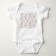 Este macacão-bebê tem um design de Boho que sobrepõe círculos em cor-de-rosa, roxo, verde-musgo e laranja-caramelo.