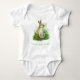 O coelhinho da mamãe. Bela coelhinha, pintei o original com aquarelas. Traje de Habby para bebês no leste ou Dia de São Patrício enquanto o coelho se senta sobre trevo, campo de shamrock.