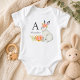 Este macacão de bebê doce apresenta um charmoso coelho em aquarela cercado por flores delicadas, criando um visual suave e atemporal. Personalizado com o nome e a inicial do seu bebê, adiciona um toque especial que o torna perfeito para presentes, fotos ou uso diário. Criado para conforto e estilo, este design adorável certamente se tornará uma lembrança querida.