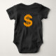 Bebê macacão com as palavras "Know My Worth" na frente, em cores africanas, com uma coroa ouro no topo. A parte traseira apresenta um sinal de dólar ouro.