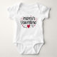 Apresentando o texto "Namorados da mãe" em caracteres pretos decorados com corações bonitos, este belo traje é perfeito para o seu bebê recém-nascido a Dia de os namorados