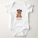 Personalize este belo casaco branco de bebê. Exibindo um adorável cachorrinho marrom, insira o nome do bebê por baixo. Compre o seu hoje!