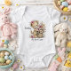 A charming Easter illustration featuring a sweet baby lion surrounded by soft pink flowers and a matching floral basket. Gentle pastels, delicate blossoms, and a personalized name create a warm, sentimental first‑Easter theme. The artwork blends springtime freshness with adorable character design, perfect for celebrating a little one’s milestone holiday.