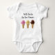 Todos sorrirão quando virem seu adorável bebê vestindo este fato engraçado declarando que o sorvete os faz sorrir. Projetado com três gráficos cônicos de sorvete apresentados em versátil, mas disponíveis em azul e rosa.