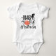Design de Halloween bonito para bebê com gráfico de abóbora. O texto diz "Este é o meu primeiro Dia das Bruxas".