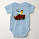 Você tem um monte de Joy baby boy que ama estar em movimento? Este é um belo casaco só para ele. Este macacão-bebê é azul com uma imagem impressa de uma pintura acrílica de um menino dirigindo seu carro esportivo vermelho e branco.