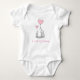 Uma mamãe e seus filhotes de elefantes segurando balões rosa. Que fofo! Personalize este adorável vestuário para bebês com todos os seus detalhes, incluindo fonte, cor, tamanho e posicionamento.