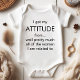 Anuncie sua gravidez com humor e estilo com nossa Camiseta "Eu Pego Minha Atitude De Quase Todas As Mulheres Com Quem Sou Parente"! Esta camiseta divertida e adorável é perfeita para fazer um anúncio de gravidez memorável ou vestir seu pequeno com uma mensagem familiar divertida.