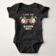 Esta é uma adorável roupa preta para bebês de uma só peça. Você vai adorar esse adorável casal de preguiça que está juntos no galho da árvore. Ele lê no topo em letras cor-de-rosa "Eu te amo" e então o texto em branco no final diz, "Sloooow Much". Vai fazer você sorrir à medida que você percebe que o fundo gráfico é uma forma cardíaca, completa com alguns corações. Faz um excelente para qualquer bebê.