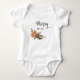 Traje bonito para bebê recém-nascido com ilustração aquosa de botânica e especiarias de Natal. O texto diz "Feliz Mini".