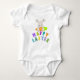 Prepare seu bebê para a Páscoa com este body que apresenta um coelho fofo segurando uma cenoura com as palavras Feliz Páscoa abaixo.