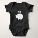 Traje de bebê com design de fazenda de ovelha fofo dizendo MEH. Engraçado macacão de bebê. Roupas de bebê para recém-nascidos. Tendência design animal neutro em relação ao gênero. Ilustração de desenho personalizável com nome de filho. Ideia divertida de presente de chá de fraldas para o novo menino ou menina. Vá em frente por filho, filha, neto, neta, sobrinho, mamãe vegetariana etc. Igualmente agradável como festa de banho de bebês presente para novas mamães, mãe e pai, pais, avós.