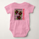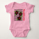 Fato de corpo florado artístico e moderno, bebê criança rosa vestido com flores pretas e listras pretas. O texto em crescimento pode ser personalizado com sua própria mensagem, ou para um nome de bebê para um belo presente.