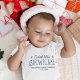 Celebre o primeiro Natal do seu bebê com este lindo body para o seu recém-nascido menino, apresentando a frase "Flaquito de neve mais fofo" em fontes modernas azuis escuras decoradas com flocos de neve. Fácilmente personalizável editando os campos do modelo para adicionar o nome e a data de nascimento do seu bebê; entre na ferramenta de design para alterar qualquer cor.