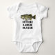 Um presente bonito para o Pai-a-ser que ama pescar. Esta camisa de bebê de pesca apresenta um gigante baixo-grande com o texto "Future Largie Slayer".