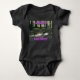 Este macacão de bebê apresenta uma foto de uma garotinha e seus cabelos pretos e bronzeados caminhando pela floresta e as palavras Future Little Coon Hunter.