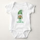 Estes gnomos divertidos e adoráveis estão aqui para desejar um Feliz Dia de São Patrício. Um macacão de bebê fofo. Design na frente e atrás da camiseta. O texto também pode ser alterado para o nome da criança, se desejar.