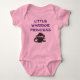 Uma trendy peça única para uma brava bebê recém-nascida com as palavras personalizadas "Little Warrior Princess" em uma fonte moderna, na moda e um desenho engraçado e fofo de um bebê macaco ninja. Eu o desenhei especificamente para um lutador feroz que lutou depois do nascimento com alguma condição de saúde. Agora o solicitante é rosa, mas você pode escolher uma cor diferente ou branco.