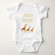 Este belo traje de bebê "Hakuna Matata" apresenta três girafas adoráveis no estilo de aquarela em um fundo branco. "Hakuna Matata" é escrito sobre as girafas. Até personalize o seu com um nome.