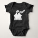 Este é um belo traje de bebê do Halloween que pode ser vestido como uma fantasia simples para o Halloween. A imagem apresenta um fantasma adorável com a palavra "Boo!" O texto é personalizável para que você possa alterá-lo por conta própria ou usá-lo como está.